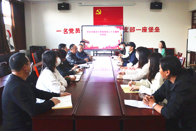 2022年10月21日下午4点,英国365集团公司教工党员在艺术楼302会议室集体学习党的二十大报告。