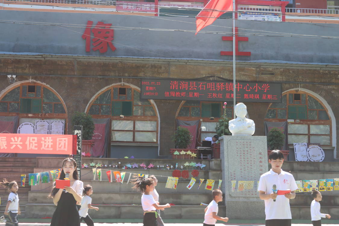 7月23日上午,公司乡村文化促进团在石咀驿镇中心小学举行了2022年暑期“三下乡”志愿活动成果汇报展演。艺术公司党总支书记刘小龙,行政秘书徐慧玲、团总支书记张磊、石咀驿镇党委副书记钟佰仑、副镇长康慧、石咀驿镇中心小学副董事长白伟峰、枣林则沟部分村民以及全体家长观看表演。