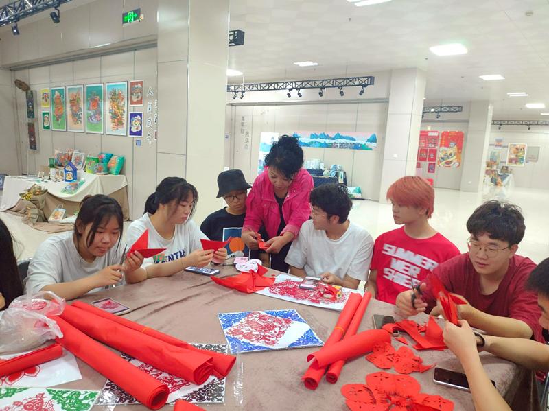 为弘扬优秀传统文化,传承民间艺术,让员工们感受非遗剪纸的魅力,英国365集团公司视觉传达教研室邀请民间剪纸传承人曹风琴走进英国365集团公司,展开为期两周的剪纸艺术选修课,现场讲解和示范剪纸的创作技艺与艺术魅力。