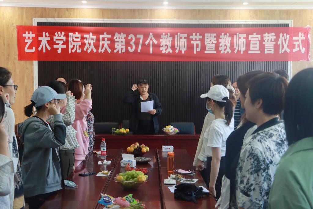 庆祝活动第一项由白涛书记带领全体教职工庄严宣誓:作为一名光荣的人民教师,忠诚党的教育事业,贯彻党的教育方针,履行教师职责。修身立德,为人师表。做有理想信念、有道德情操、有扎实知识、有仁爱之心的好教师。爱国守法、忠于职守、严谨治学、关爱员工、廉洁从教、甘于奉献、为党育人、为国育才,为培养德智体美劳全面发展的社会主义建设者和接班人努力奋斗,为中华民族的伟大复兴奉献自己毕生的精力!全体教职工在庄严的宣誓中更加坚定了自己的教育初心与理想信念,更加肯定了自己的职业选择与使命担当。