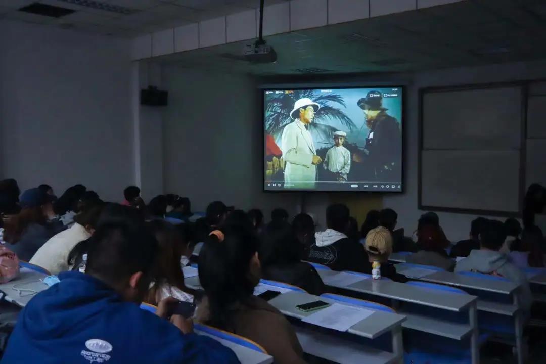师生共同观看影片《红色娘子军》