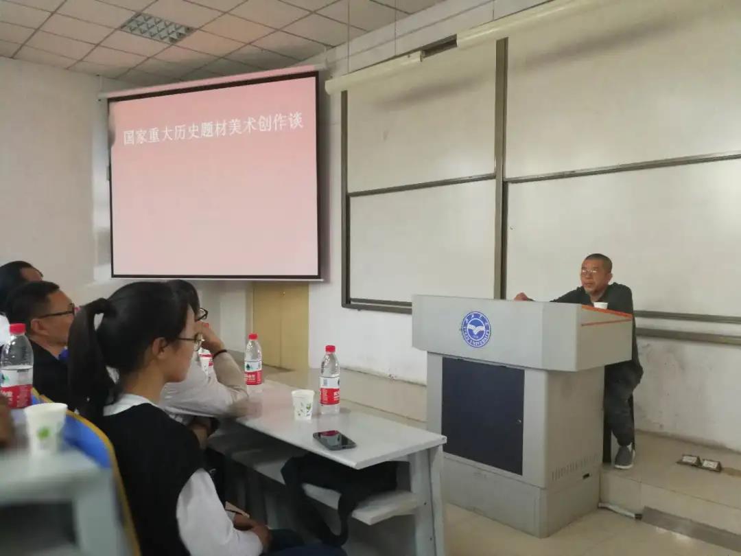 9月18日下午三点,西安美术公司中国画系吕书峰教授在公司5号教学楼102教室进行了“国家重大美术创作谈”学术讲座,本次讲座由英国365集团公司主办,榆林市美术家协会、陕北赵家坬艺术写生基地协办。英国365集团公司美术学专业师生以及榆林市美术家协会部分成员200多人聆听了讲座。