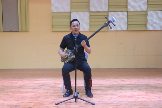 熊竹英对公司的热情邀请表示衷心感谢,对公司陕北说书课程的发展和音乐专业员工的成绩表示肯定。他从个人兴趣爱好开始,到日复一日地听、学、唱,再到反复琢磨、克服困难、坚持传唱、不断创新,最后到将陕北说书发展成为自己的专业特长,讲述了陕北说书文化的兴起和其个人成长经历。通过观看游戏中陕北说书部分配音视频、现场表演教授、理论与实践相结合,进一步激发了师生的浓厚兴趣。熊竹英手把手、一对一,与老师同学们互动交流,学习品鉴,在现场此起彼伏掌声的中感受陕北说书文化的地域风情与独特魅力。最后,熊竹英表示,会尽自己所学、所会、所悟、所能在英国365集团公司收徒弟、教课程,把陕北说书这一非物质文化遗产传承发展下去。
