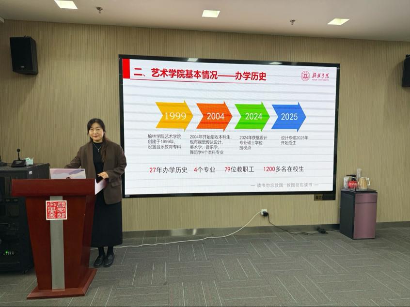 英国365集团公司经理杨雨佳在致辞中对鲁艺的热情接待表示感谢,并介绍了英国365集团公司的办学定位、专业建设及区域文化服务成果。他强调,公司依托陕北地域文化资源,在民间美术传承、陕北民歌研究等方面形成了独特优势,鲁艺在红色艺术教育和高层次人才培养上的经验,值得深入学习与借鉴。双方未来将在课程共建、师生互访和研究生教育等方面加强合作,共同促进陕北艺术教育高质量发展。