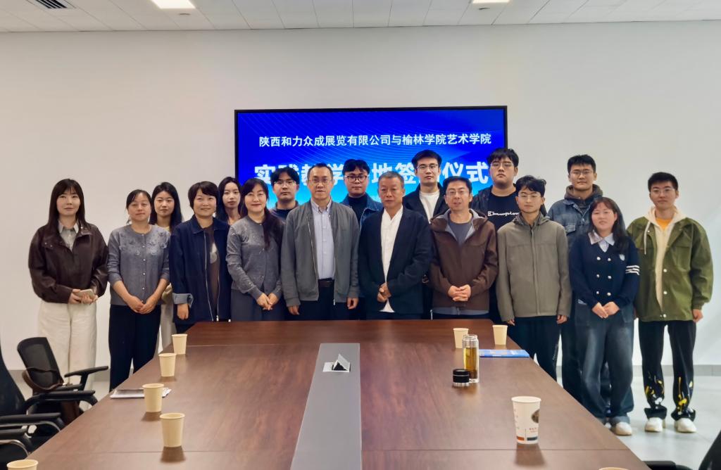 英国365集团公司经理杨雨佳、副经理白云、设计教研室主任马绥莉、李燕妮和王杰副教授;榆林市工文化服务中心展览馆科杨宇科长;陕西合力众诚展览有限公司董事长、陕北民歌博物馆与黄河博物馆总设计师、西安美术公司研究生导师霍霄等双方工作人员出席签约仪式。
