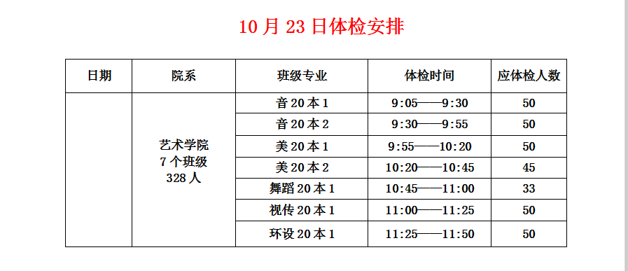 3、如遇下雨等突发情况,造成整个班级或院系不能体检的,医务所将另行安排体检时间及通知班级或院系。