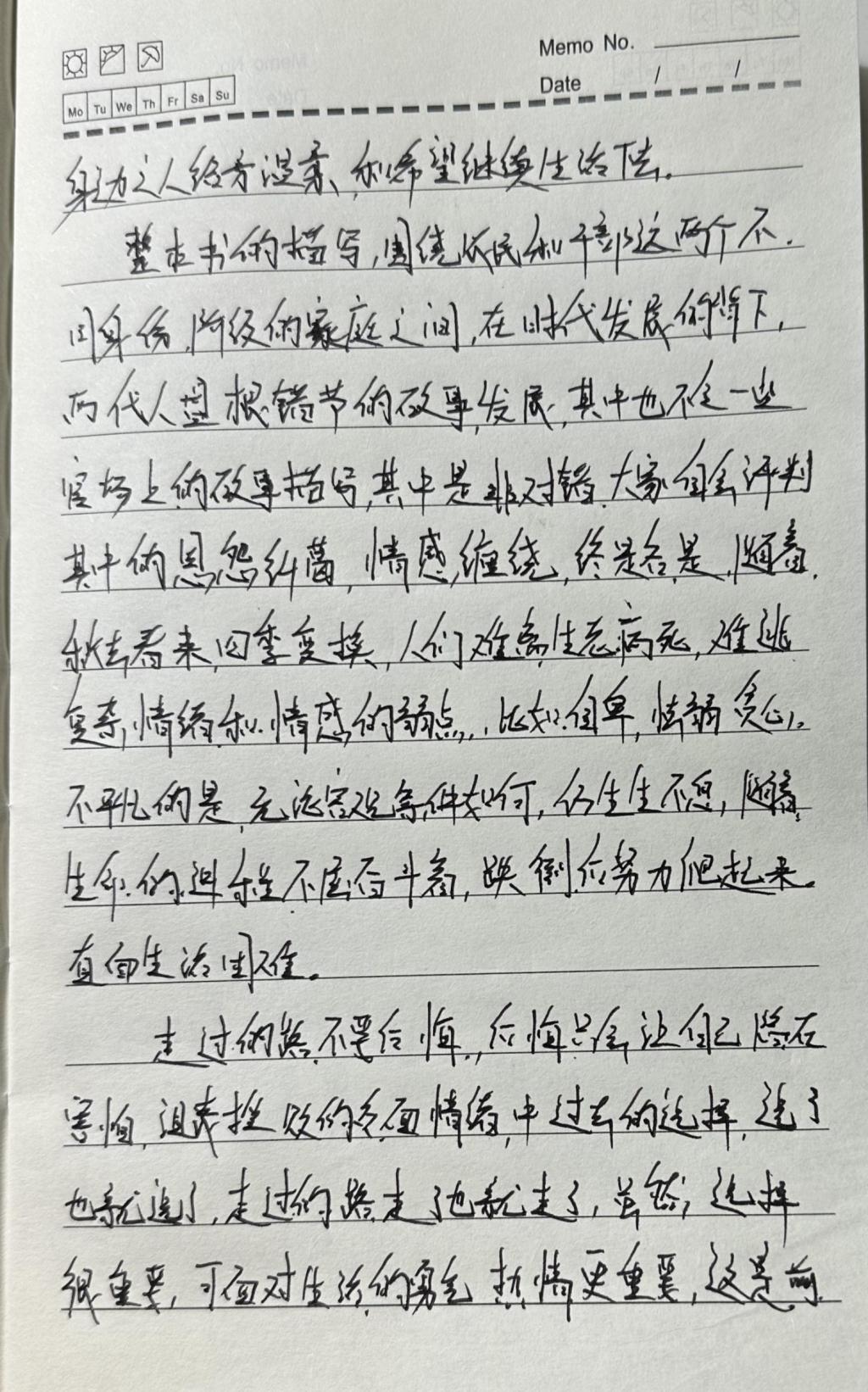 品读《活着》,它就像一首古老而质朴的歌谣,用最平实的语言,向我讲述着生命中脆弱与顽强、欢乐与哀伤的真实故事。主人公福贵的一生充满了苦难,从富家少爷到一无所有,亲人相继离世,命运对他如此残酷,但他依然坚强地活着。这本书让我深刻体会到生命的坚韧,也让我懂得珍惜当下,感恩生活,因为活着本身就是一种莫大的幸福和财富。
