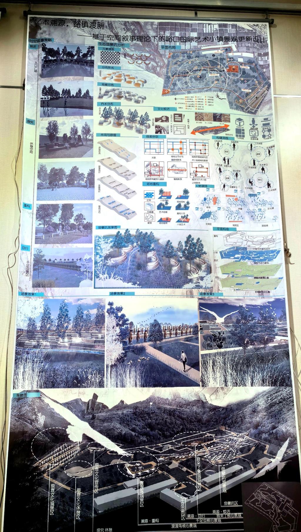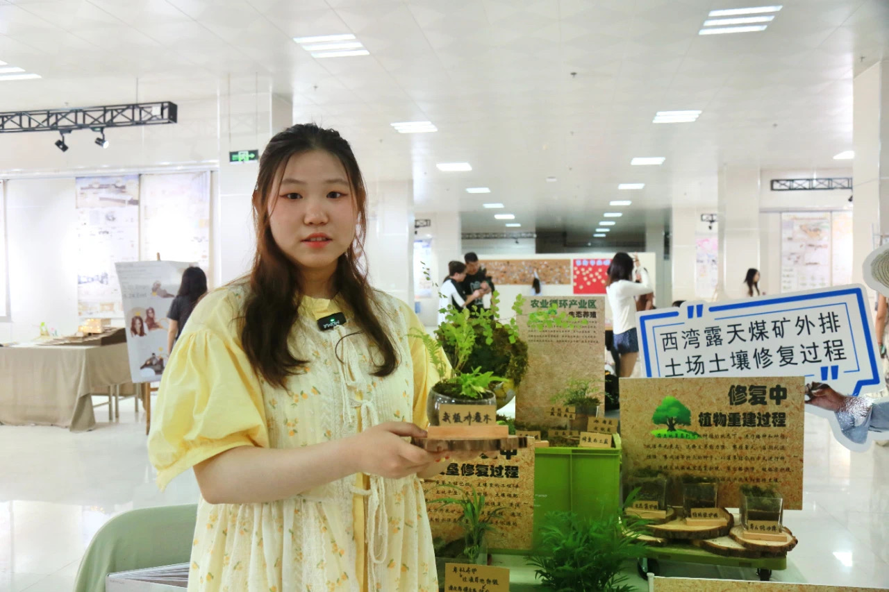 "我们通过深入分析前期土壤状况、修复前的土壤条件以及影响的气候因素,识别了场地所面临的各种危害。针对这些危害,我进行了深入研究和探讨,制定了一套有效的修复策略。最终,我们的目标是成功修复矿坑的生态环境,使其恢复到一个适宜种植的状态。我衷心希望这件毕业作品能够在未来某一天得到真正地实施,为环境保护和可持续发展贡献一份力量。"赵钰宁说。