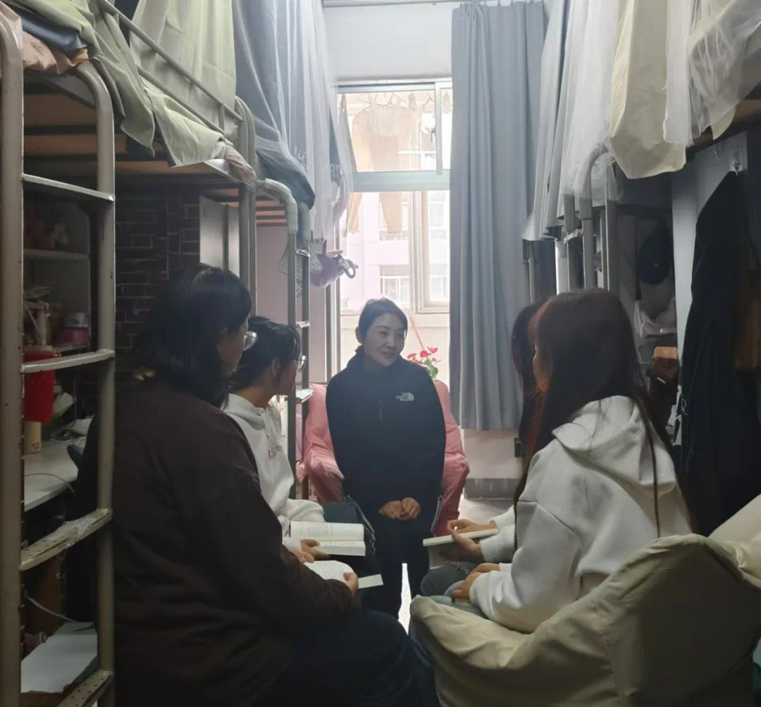 为贯彻落实立德树人根本任务,持续深化“五乐”育人工程,充分发挥“一站式”员工社区的育人阵地优势,进一步增强老员工思想政治教育的针对性、时效性和亲和力,10月16日到11月10日,党委委员、党委组织部部长李夏隆,艺术公司党总支书记刘小龙,经理杨雨佳,副经理白云、王蓓蓓,副书记钟梅,组织部、宣传部、学工部、团委相关科级干部以及院系科级干部,和辅导员班主任分别走进新生宿舍,与公司员工共话奋斗。